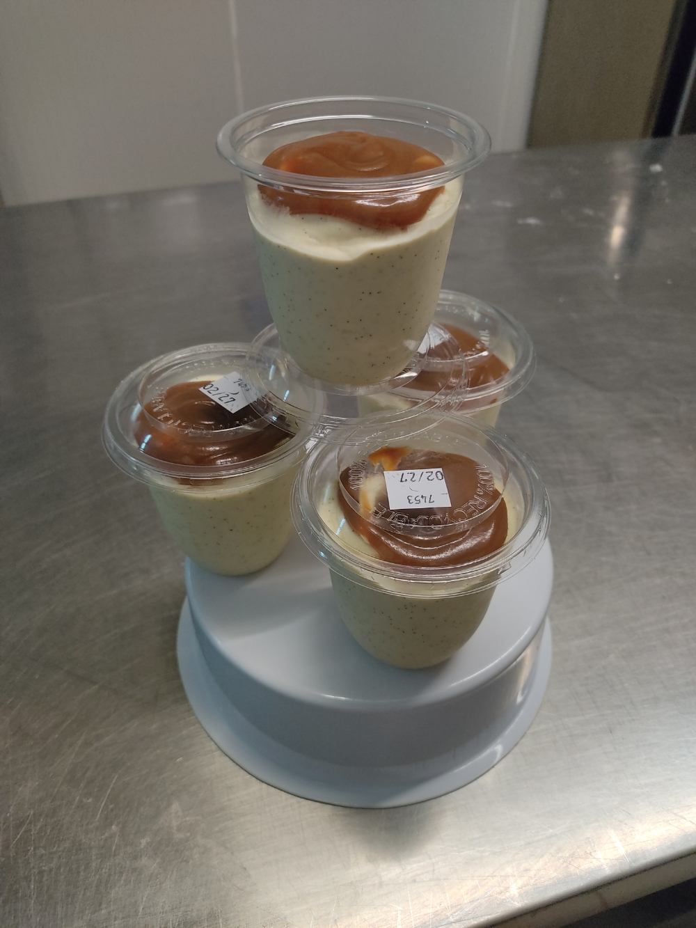 Nos verrines se composent d’une crème glacée vanille de Madagascar et d’un coulis caramel.